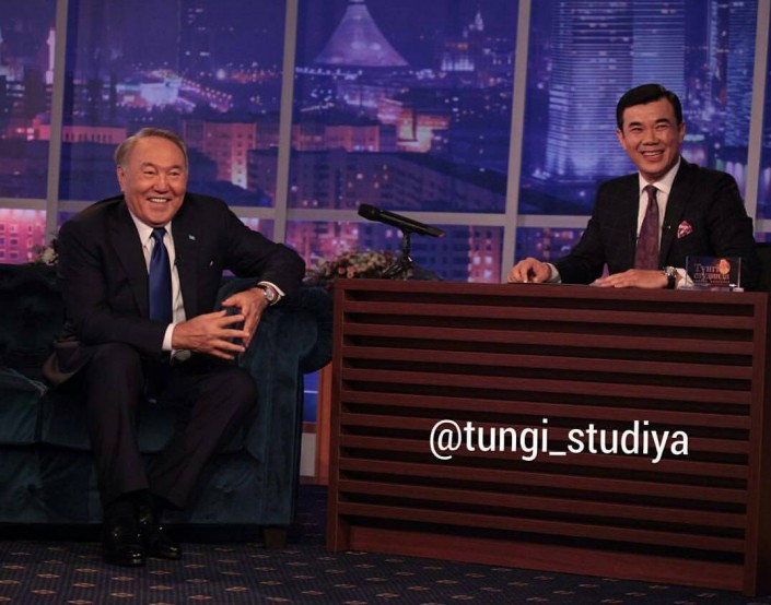 Қазақстан Президенті "Қазақстан" телеарнасының "Түнгі студияда" бағдарламасының қонағы болды. Бағдарламаның Instagram желісіндегі парақшасында Мемлекет басшысының және шоу жүргізушісі Нұрлан Қоянбаевтың суреттері пайда болды.